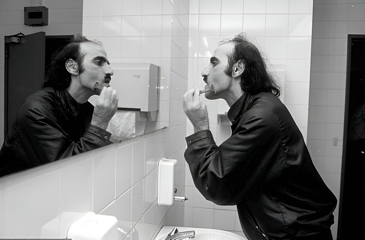 শারল দ্য গল বিমানবন্দরের ওয়াশরুমে শেভ করছেন মেহরান কারিম নাসেরি। ছবি: এএফপি