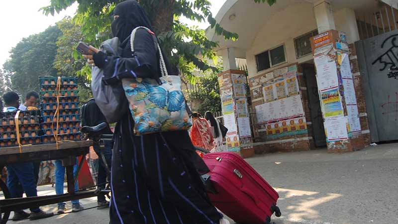রোকেয়া হলের সামনে হল ছেড়ে যেতে দেখা যায় শিক্ষার্থীদের । ছবি: সমাজকাল।