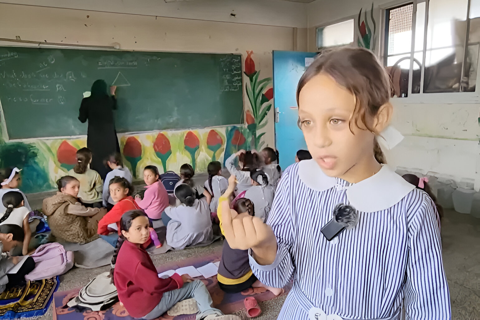 চতুর্থ শ্রেণির শিক্ষার্থী ইনাম আল-মাঘারি বলেন, ‘দুই বছর ধরে স্কুলে যেতে পারিনি। দ্বিতীয় ও তৃতীয় শ্রেণি শেষ করতে পারিনি। এখন মনে হয় কিছুই জানি না। আজ বেঞ্চের বদলে ম্যাট্রেস নিয়ে বসে পড়তে হচ্ছে।’
