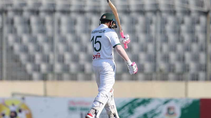 শততম টেস্টকে স্মরণীয় করতে মুশফিকের ব্যাট ছিল পুরোটা সময় ন稳稳। মুমিনুল হককে সঙ্গে নিয়ে চতুর্থ উইকেটে তারা গড়েন ২১৪ বলে ১০৭ রানের জুটি।